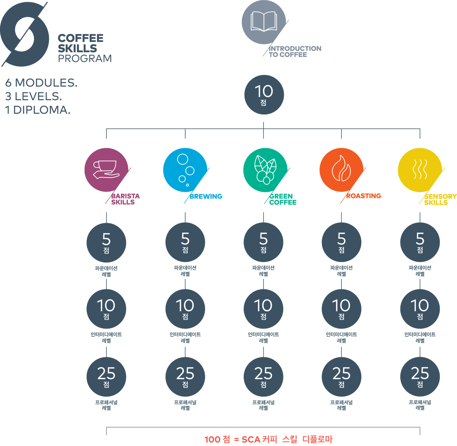 즉, 필자가 Barista Skills의 Foundation과 Intermidiate 자격증이 있고, Roasting의 Foundation 자격증이 있다면 총 20점을 취득하게 되는 것이다.