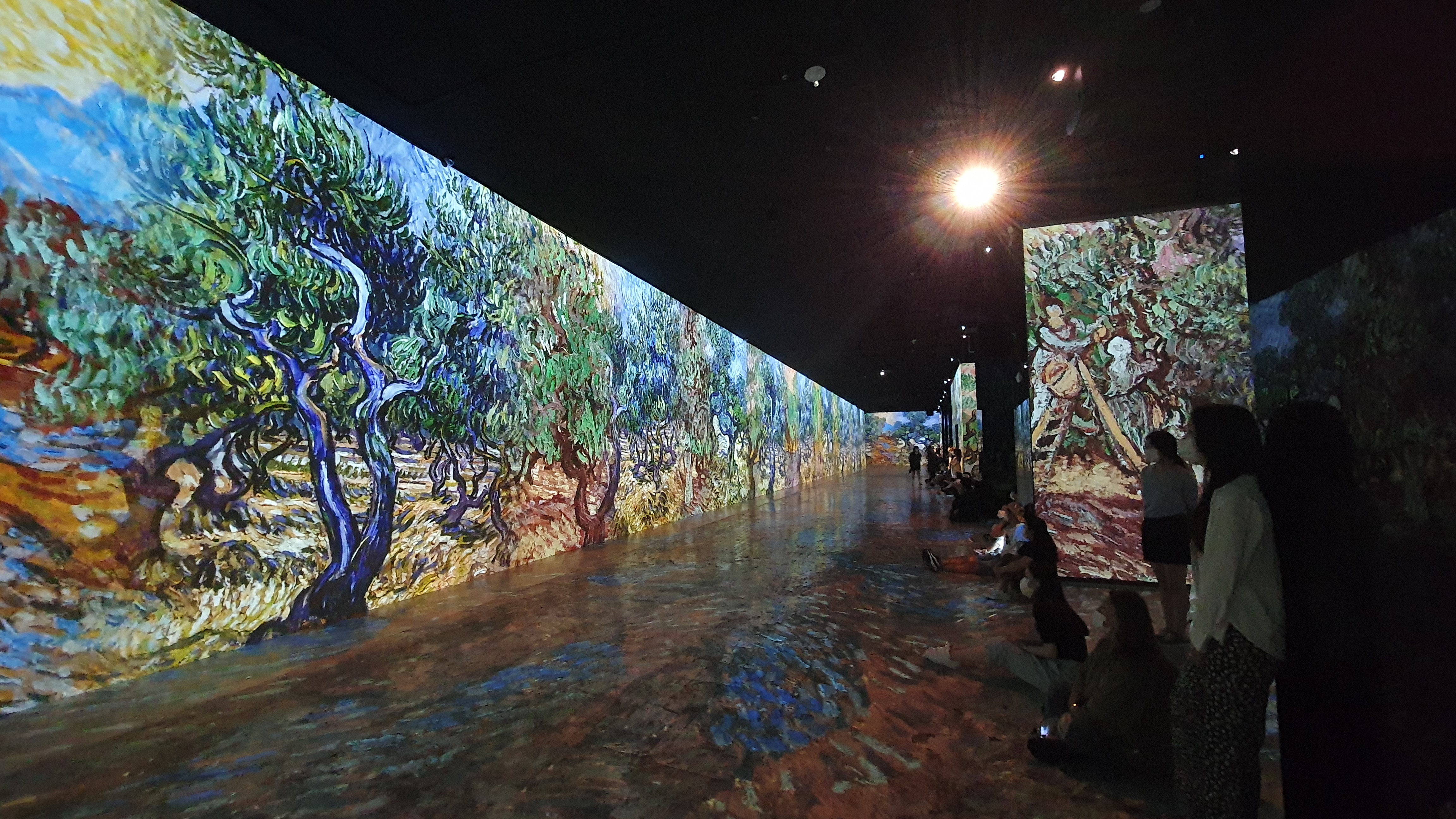 이 전시의 휘날레는 상단 동영상인 반 고흐의 '론강에 비치는 별빛'이다. 별을 비추는 론강의 흐름이 바닥에 프로젝션되며 마치 론강에 와있는듯한 착각을 주며, 로맨틱한 기분을 준다.
